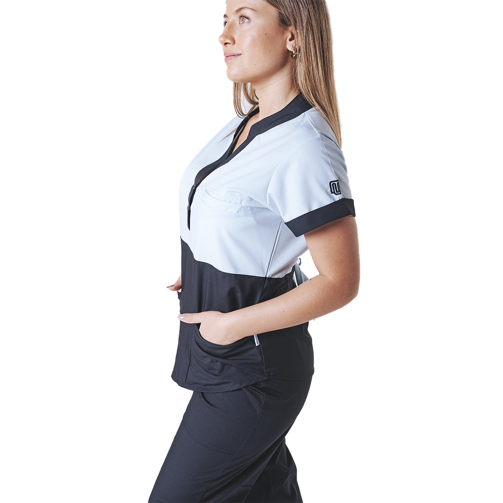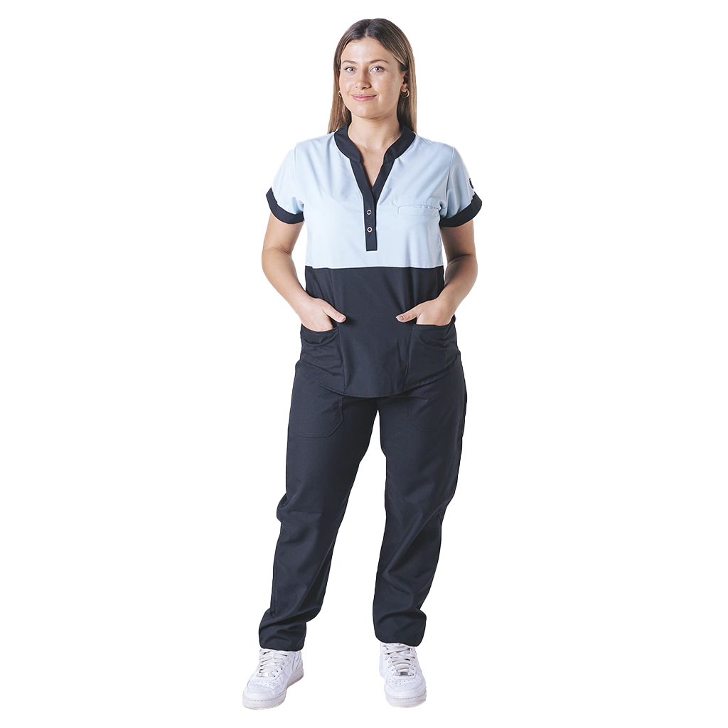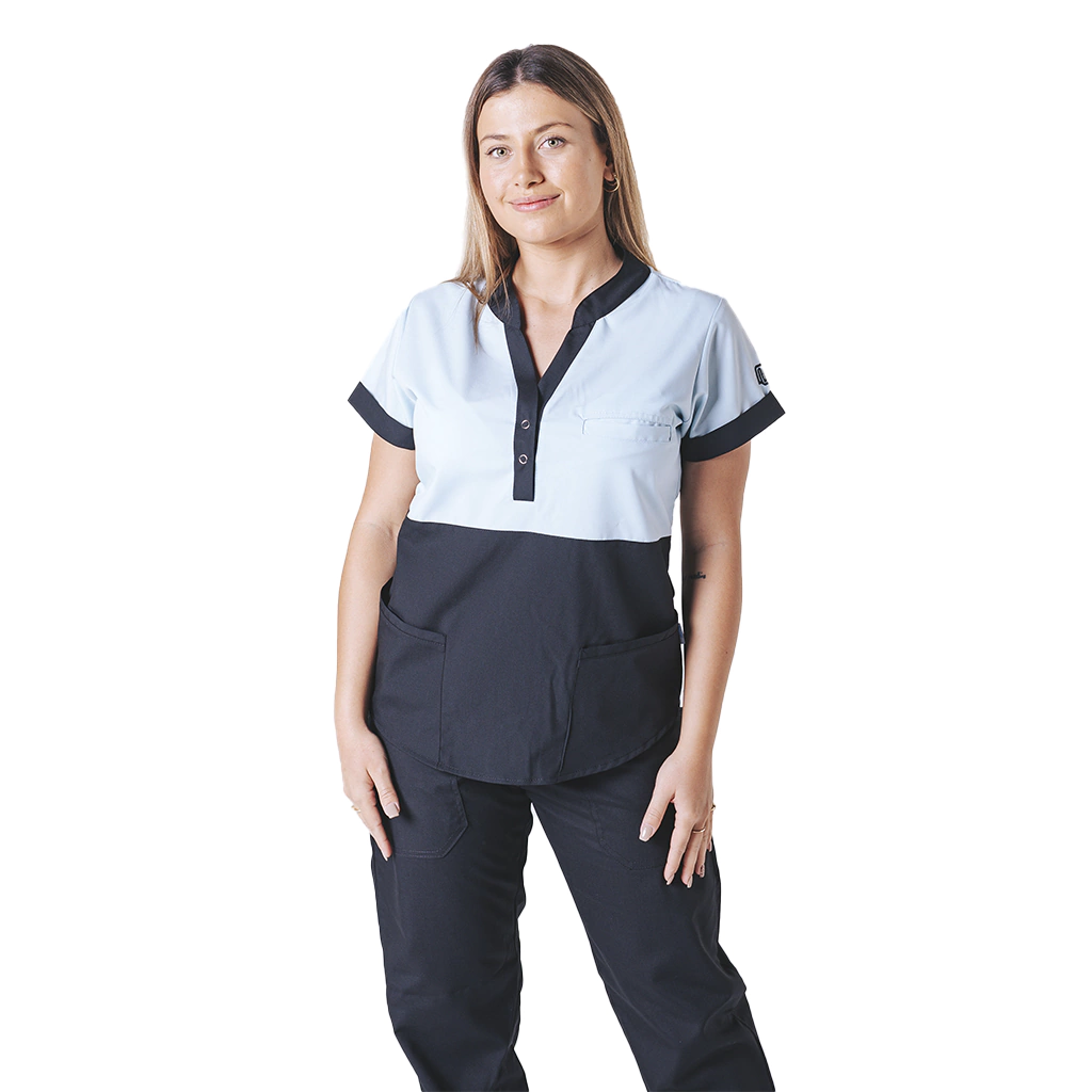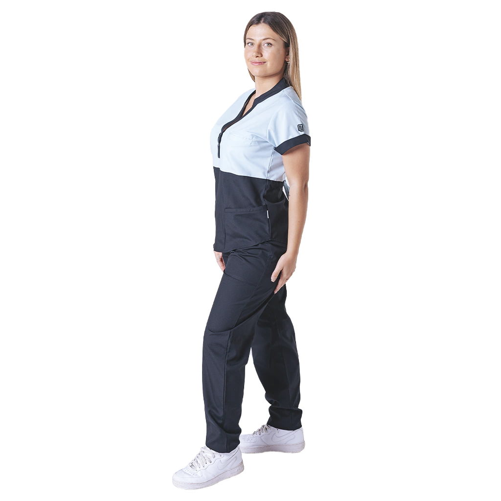 El Ambo Paulina no pasa desapercibido: es la combinación perfecta entre comodidad, estilo y resistencia. Su chaqueta semiabierta con diseño bicolor lo convierte en un modelo distinto, ideal para quienes quieren trabajar con confianza y a la vez marcar tendencia en su uniforme diario.