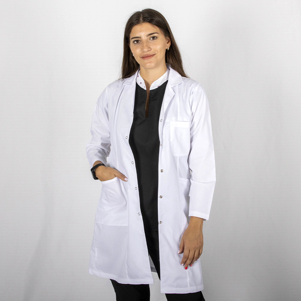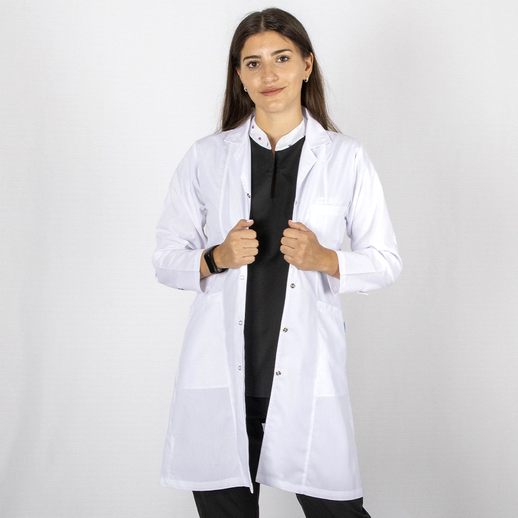 Este guardapolvo blanco liso combina el estilo clásico con un corte entallado que realza la figura sin perder comodidad. Ideal para profesionales que buscan una prenda práctica, duradera y con una imagen impecable durante todo el día.